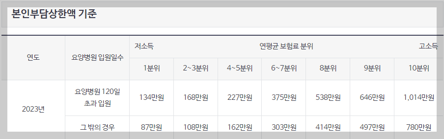 본인부담상한제란 말 그대로 내가 부담해야 하는 상한이 정해져 있다는 것입니다.