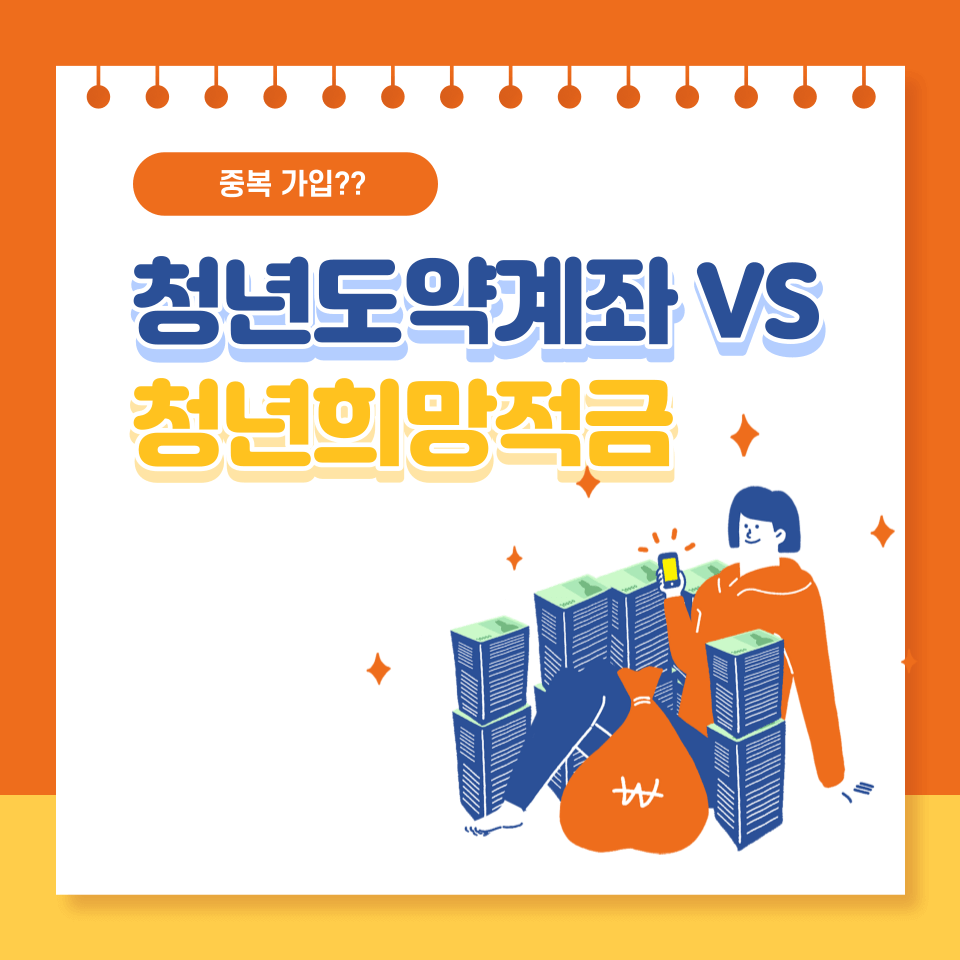 청년도약계좌와 청년희망적금이 중복가입 되는지 빠르게 알아보겠습니다. 어떤 혜택들이 자신에게 이득이 되는지 꼼꼼히 따져보고 선택해 조금이라도 많은 지원금 받아가시길 바랍니다.