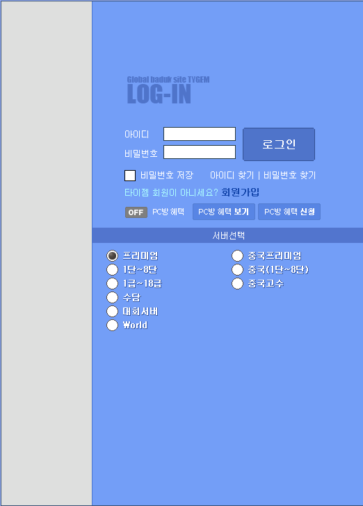 설치를 완료하게 되면 자동으로 타이젬 바둑이 실행됩니다. 아래 그림처럼 보이신다면 설치가 잘 되었습니다.